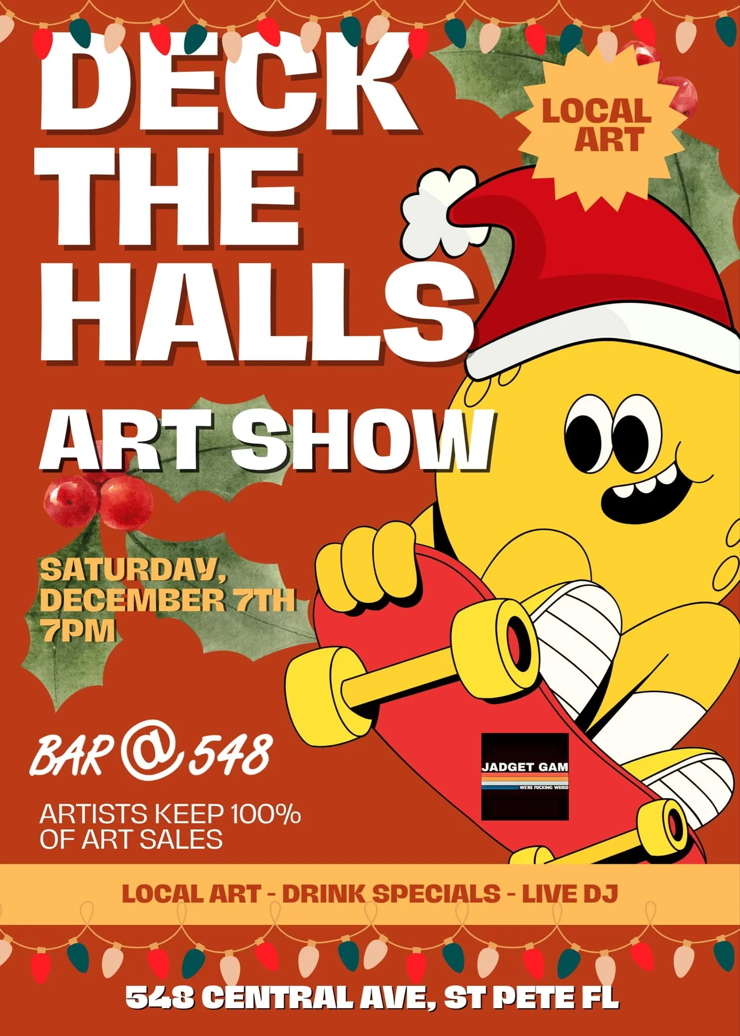 Join us for the Annual Deck the Halls Art Show at Bar@548! This exciting group exhibition celebrates creativity with a unique focus on skate decks as the canvas. While holiday-themed work is welcome, all styles and subjects are encouraged to entice holiday shoppers looking for that perfect gift.